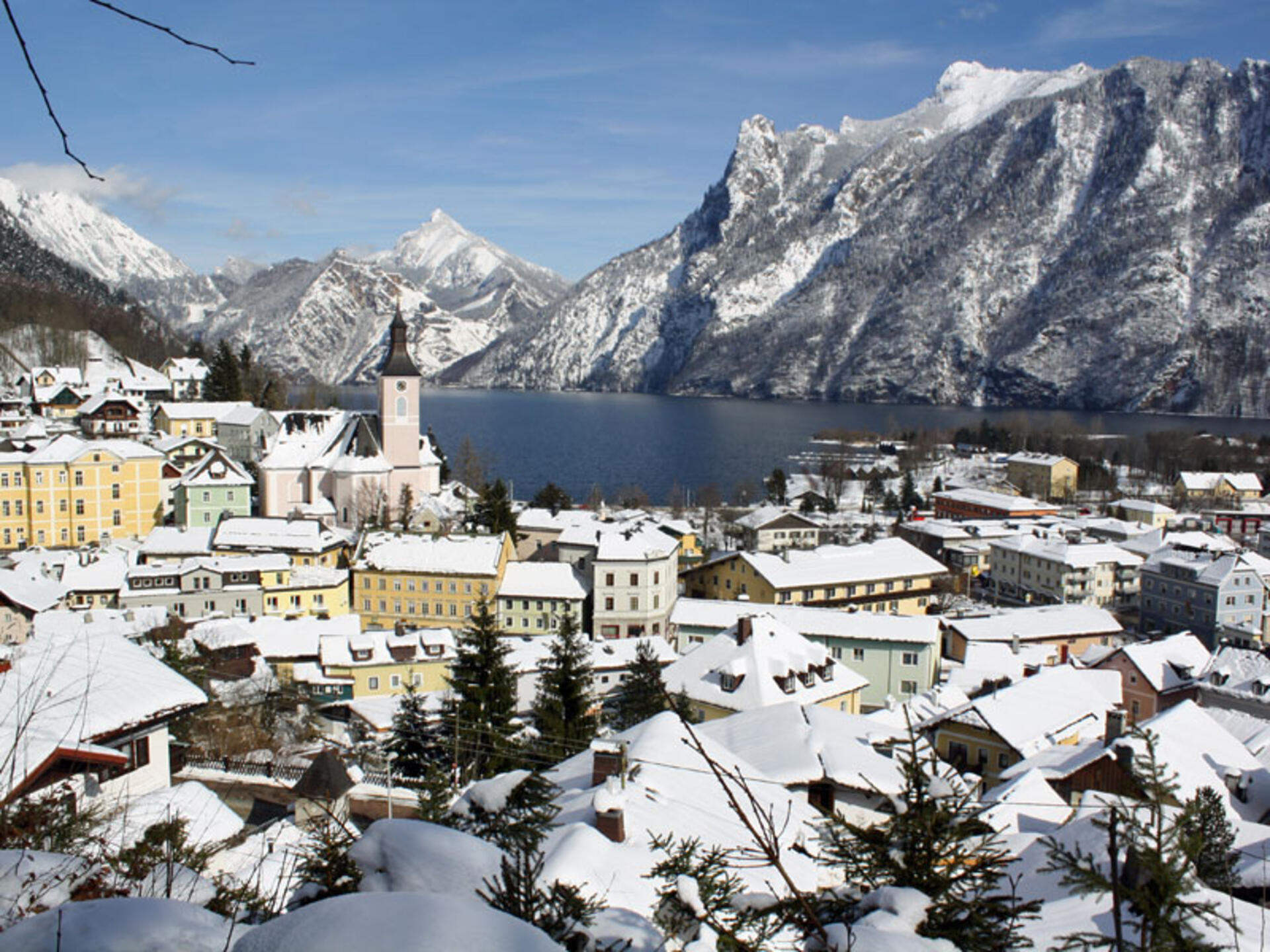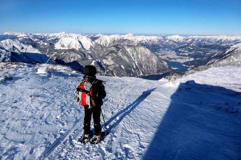 Bucurați-vă de un tur prelungit cu rachete de zăpadă în peisajul strălucitor de iarnă, cu priveliști uluitoare ale lacului Traunsee și ale ghețarului Dachstein.